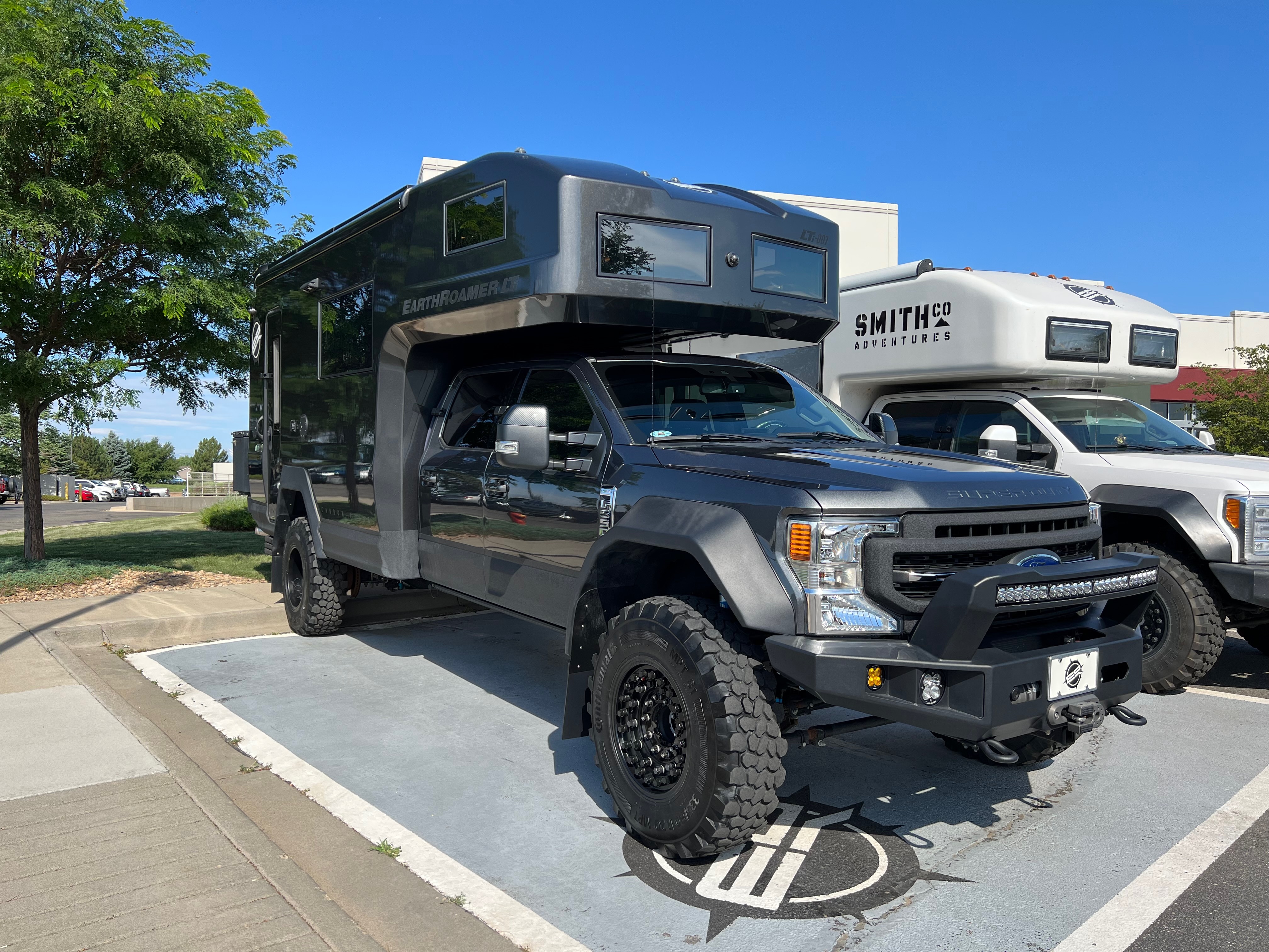 The EarthRoamer LTi is a vacuum-infused carbon fiber camper body lithium-ion battery bunk side windows and raised ceiling height all built on the Ford F-550 chassis that we know and love.